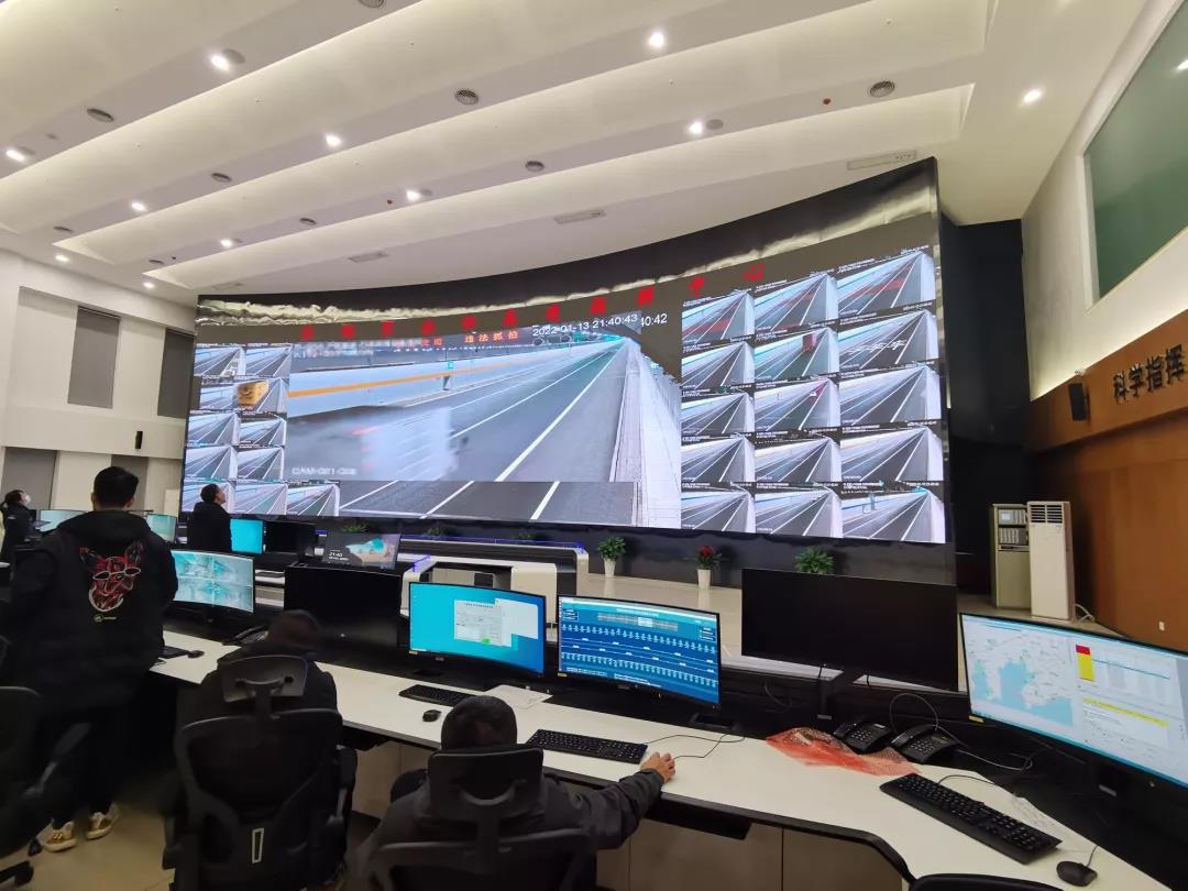 指挥中心可将道路上的任意监控点、道路车辆数据、重点画面、视频等一键上大屏观看;值班人员通过现场大屏幕监控道路行驶情况,事故多发点信号轮巡观看,接收车辆故障求助电话后,及时调度附近的资源,实时观看救援进度,道路异常拥堵及时启动应急疏导预案流程,疏导车辆。