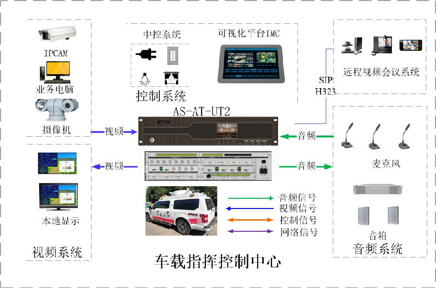 通信车的设计和建设,要按照先进、可靠、长远发展的要求进行,适应数字化、网络化、系统化、多维化发展的需要。车载K1体育音视频综合一体机AS-UT2系统以机动指挥车新一代标准设计,符合国家标准,集音视频处理器、视频切换、可编程中控、车载行程录播、音视频指挥调度等业务模块,通过可视化人机操作界面,实现高效率机动指挥调度,解决动中通应急指挥应用。