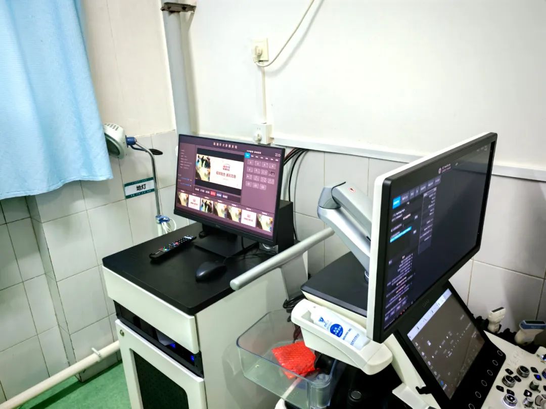 手术室前端设备固定装示教推车,推车带支臂装4K术野摄像机、全景支架,还提供2台显示设备,供显示本地与远端画面。